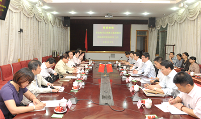 校党委书记周光耀致欢迎辞,对李宣海书记一行百忙中莅临我校指导工作表示感谢。随后,校长李和兴作了关于我校改革与发展以及近期规划的主题汇报,围绕我校发展的概况、学校“十一五”期间的进展和成果、“十二五”发展规划、学校发展面临的问题以及希望教委给予的支持等五个方面作了详细汇报,重点就人才培养、师资队伍建设、学科建设和科学研究、国际合作与交流等方面的预期建设成效作了阐述。