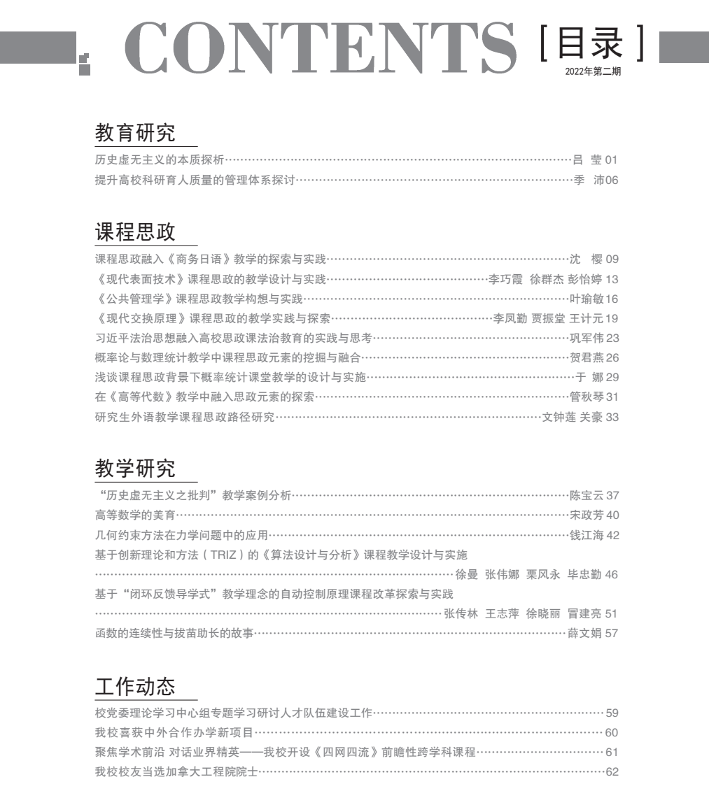 《上海电力大学高教研究》2022年第二期目录